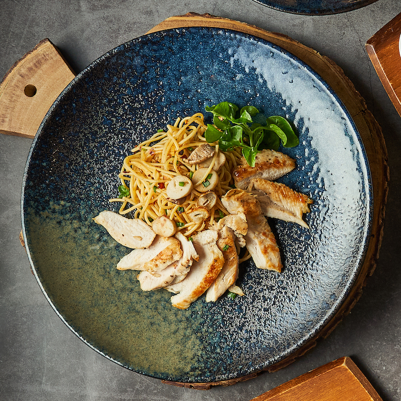 สปาเก็ตตี้โอลิโออกไก่ย่าง
