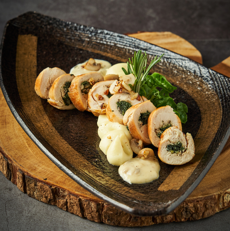 ไก่รูลาดย์ไส้ผักขมและเห็ด